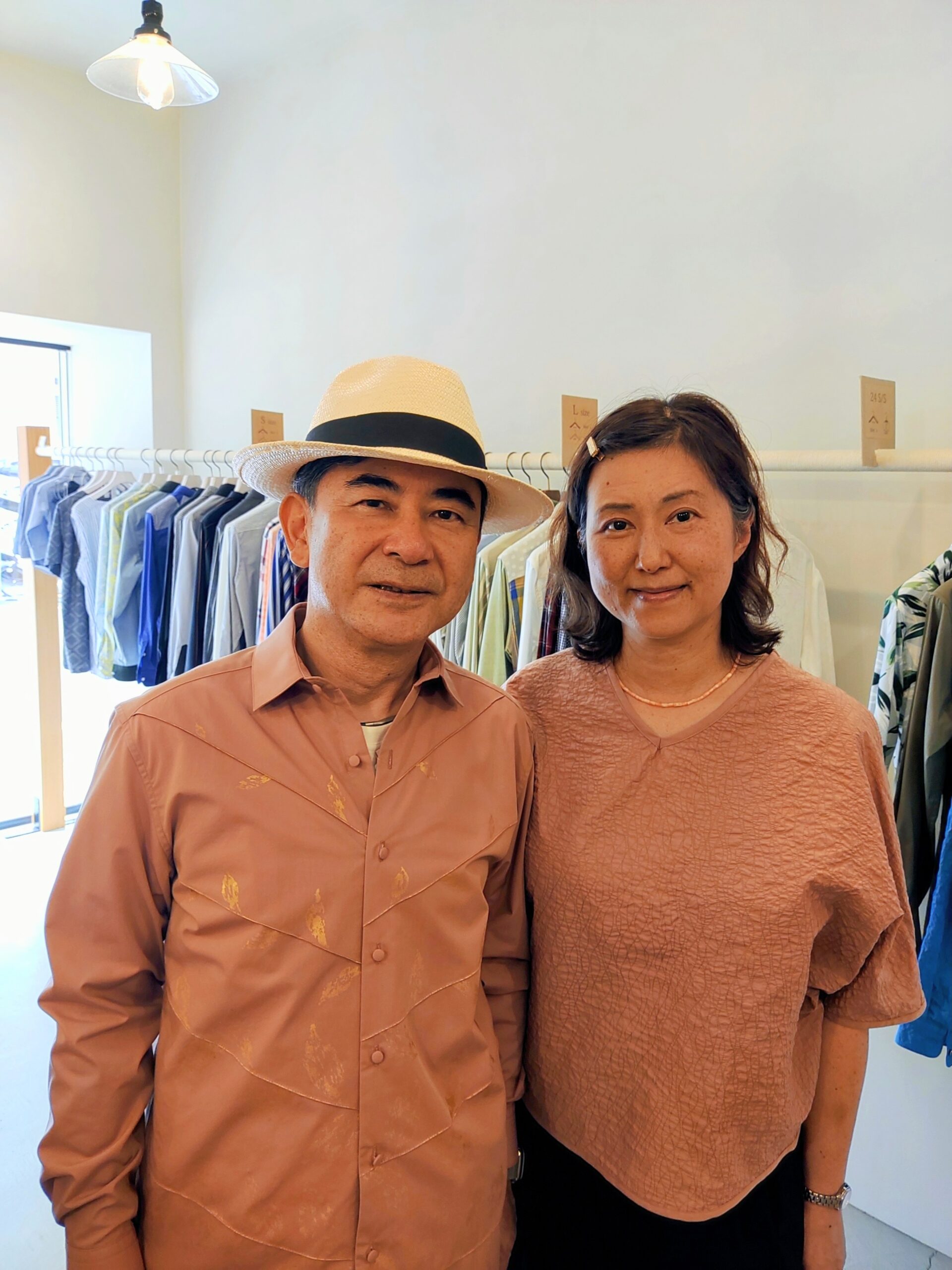 音楽は世界を繋ぎ国境を越えると表現されることがあります。もし嫌な思いやしんどい思いをしている人が音楽を聴いて心休まる時間が取れたら素敵な事だと思います。神戸コトノイロシャツのシャツは日常着としてのシャツ意外にも、アーティストさんや演者さん・舞台などでもご利用いただいているんです。最近ご利用いただいたアーティストさんは関西を中心に活動されているボサノバユニット「リセとザズー」さんです。リセさんはステッチのムササビシャツを、ザズーさんはタックとプリントで木々を表現したシャツを着用いただいています。ベースに使用しているピンク生地は共生地です。もちろんライブで着用したいということでご購入いただきました。そしてこの日は、神戸コトノイロシャツの店舗内で動画撮影をしたいとのことで、約1時間お二人の歌と演奏も聴かせていただきました。幸せすぎました!