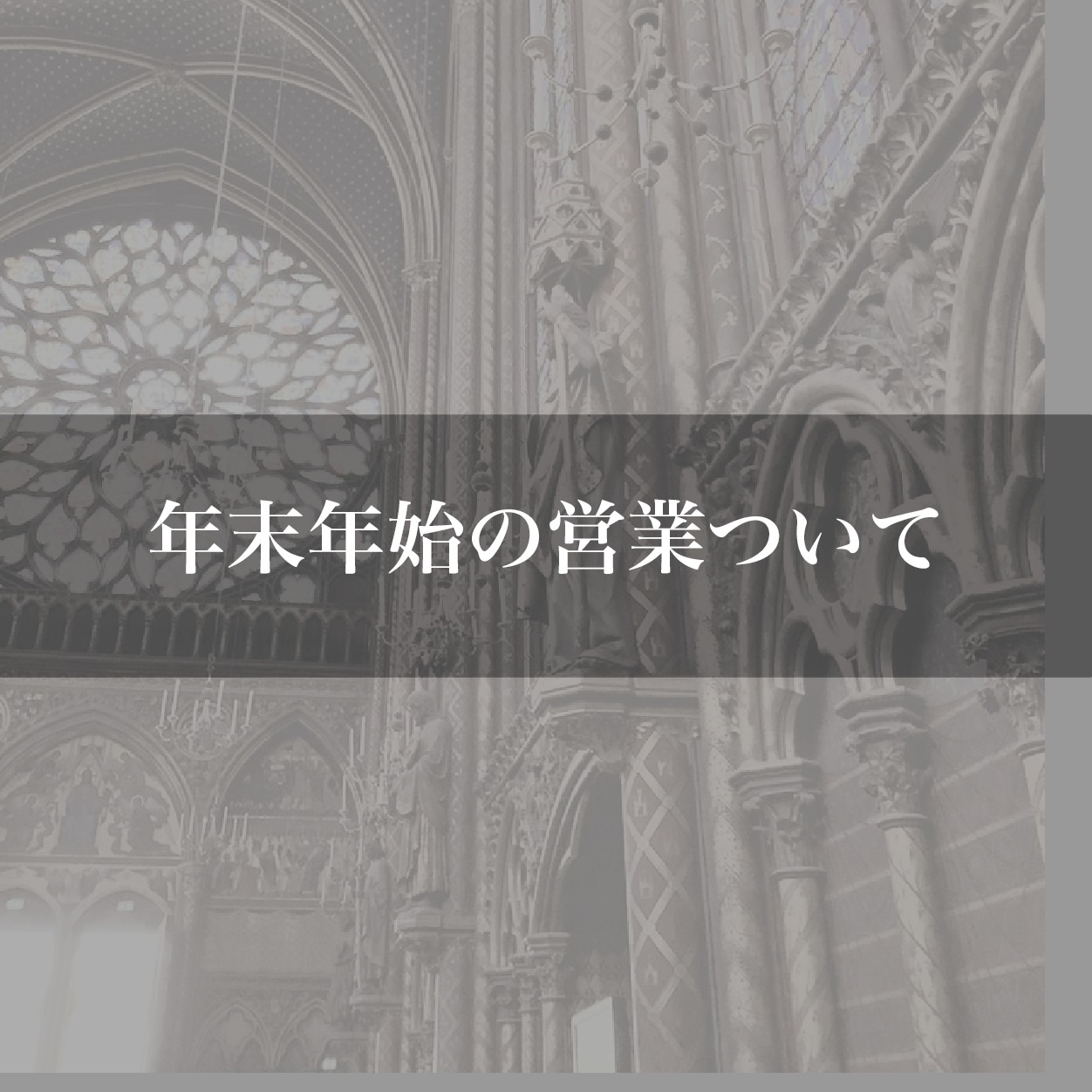 年末年始は下記のスケジュールで営業いたします。なお年始においては、不規則な営業を予定しておりますので年明けの「NEWS」ご確認ください。